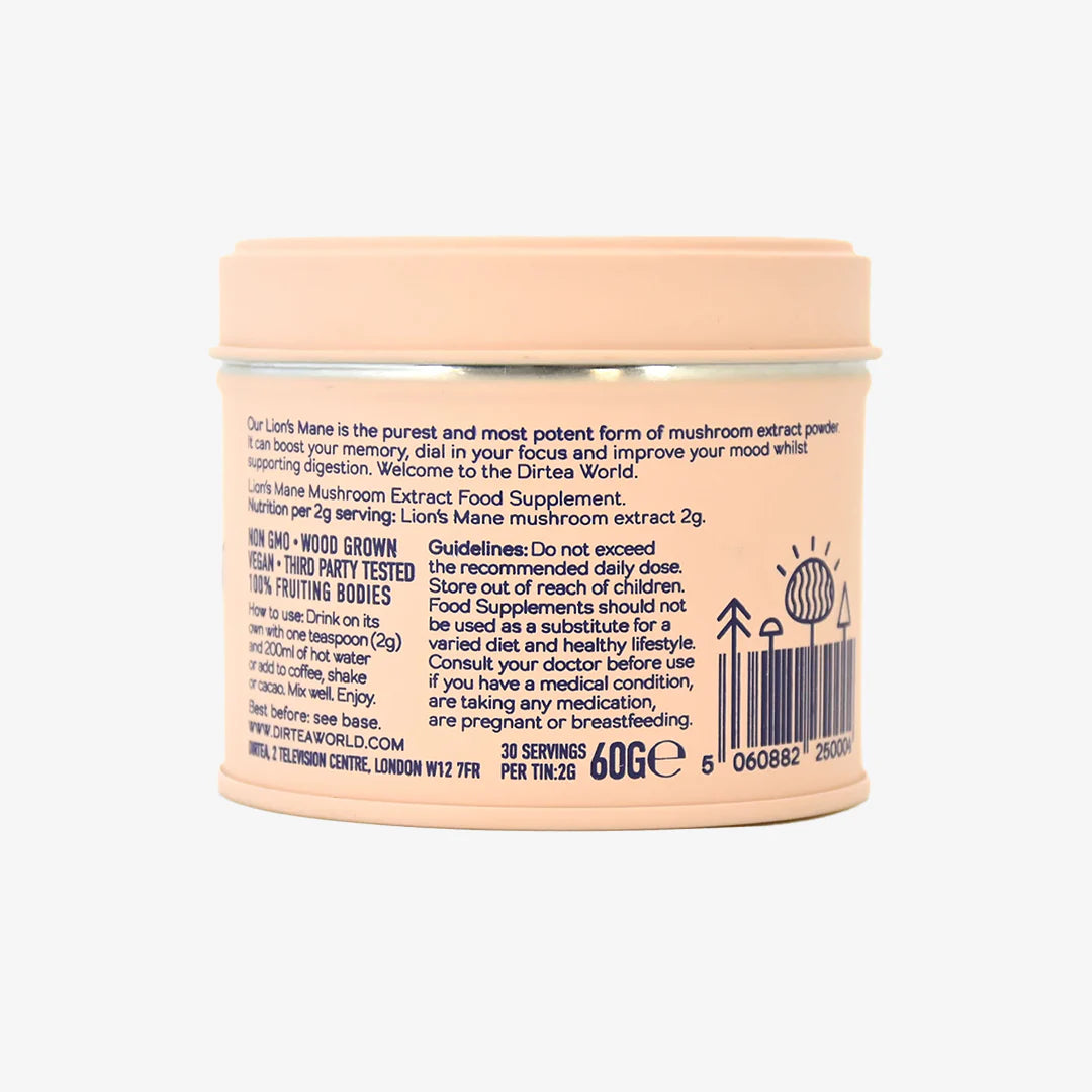 DIRTEA Lion's Mane enhances brain power, boosts memory and improves digestion.