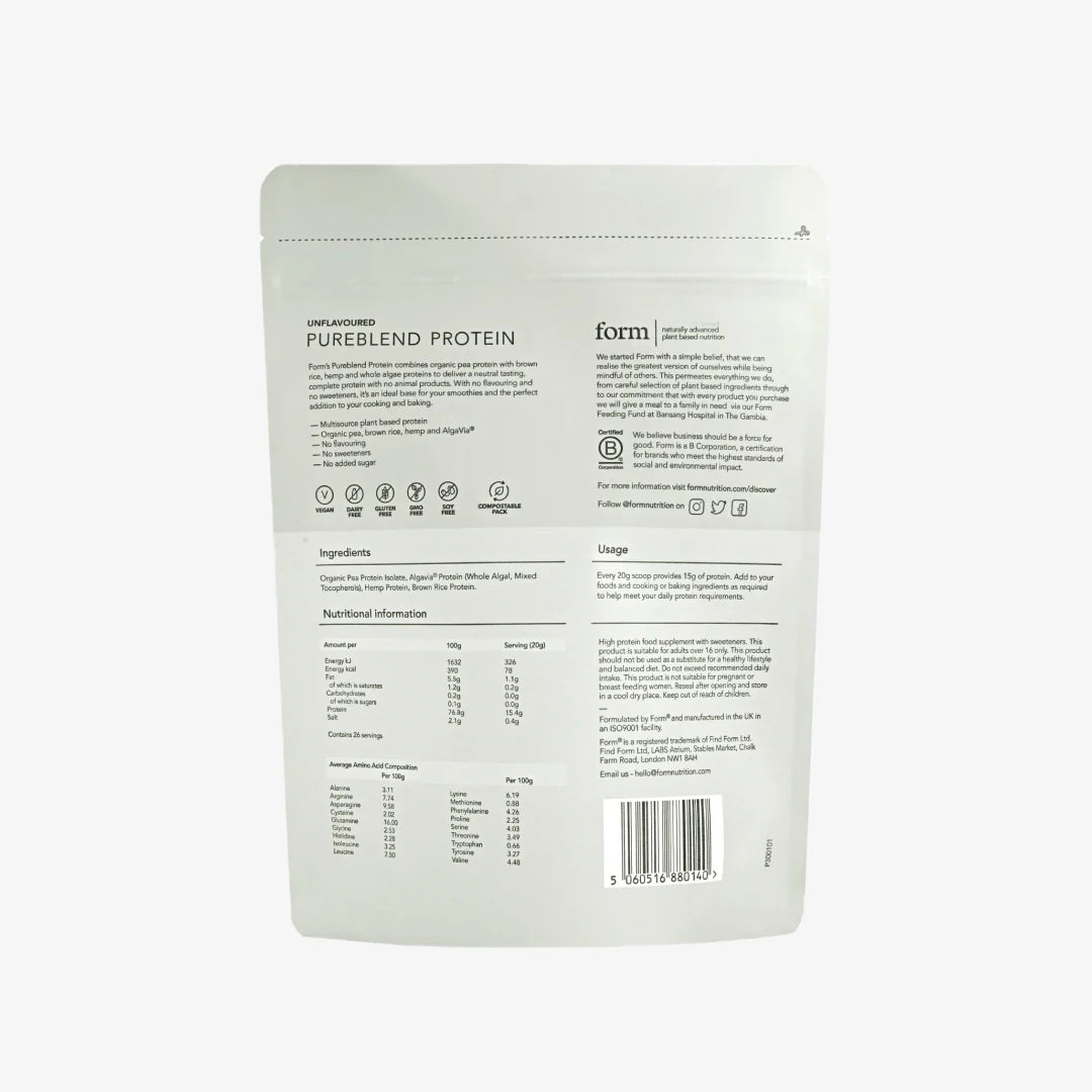 Form’s Pureblend Protein offers a flavourless, sweetener-free, plant-based protein with a complete amino acid profile. It's ideal for muscle growth and repair.